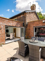 A substantial 14m single-storey rear extension to an existing barn conversion, designed to create a generous open-plan living, dining and entertainment space with a strong connection to the garden.